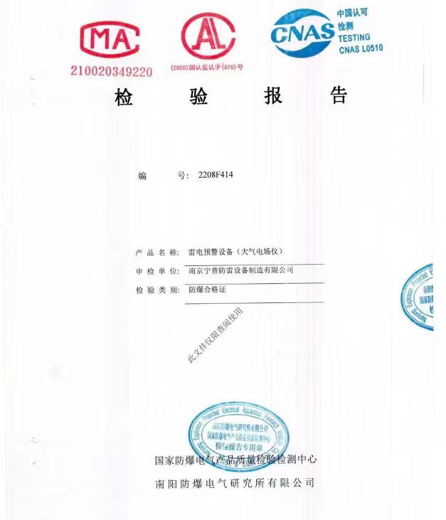 雷電預(yù)警防爆合格證